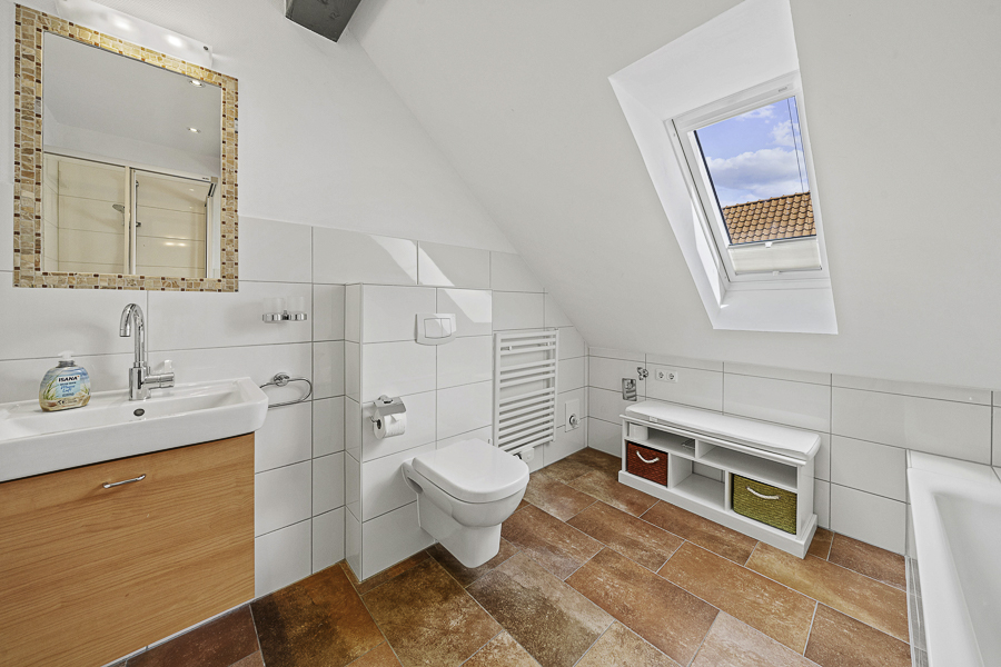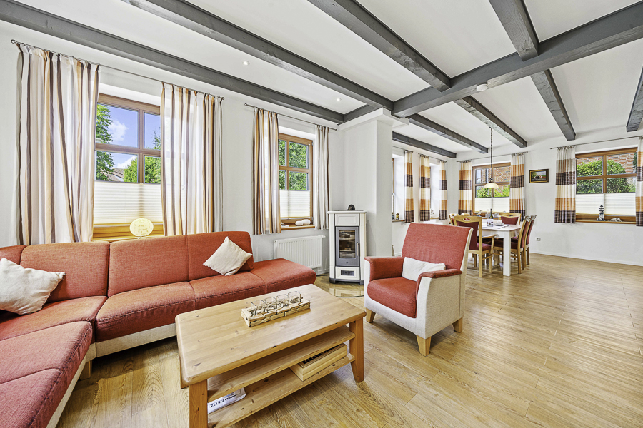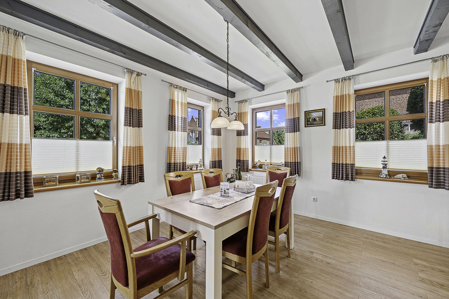 Auch diese Wohnung liegt direkt am Deich und ist nur 2 Minuten vom Ortskern entfernt.